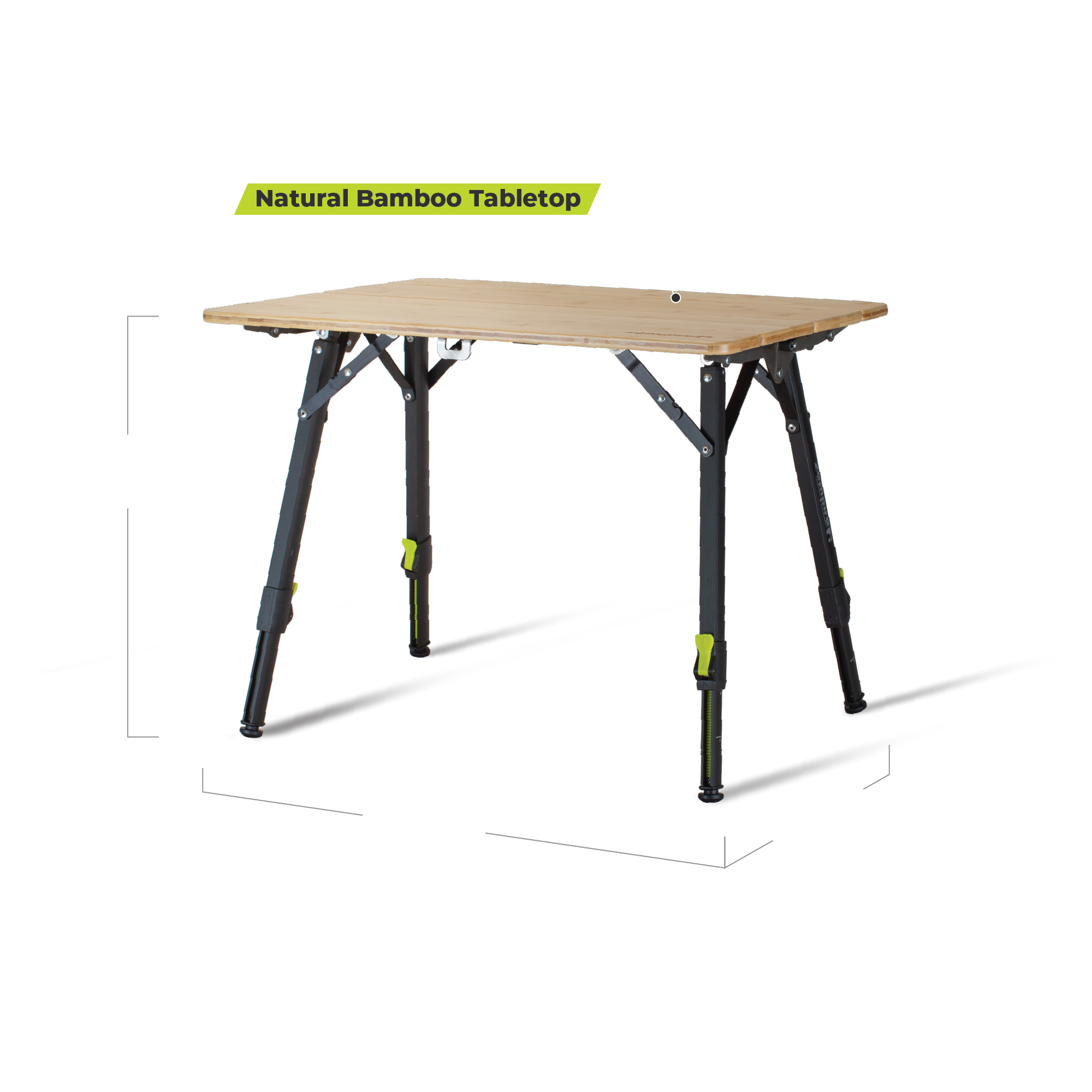 Our Kitpac Pro Standard Camping Table is built with a new aluminium frame, making for an even sturdier table with minimal movement. The natural bamboo tabletop is significantly thicker than previous models, yet remains just as smooth and heat-resistant. New slide-out brace plates make setup and packing away much easier, while also enabling a drop-down panel option to change the tabletop size to use in tight spaces. The table height can be adjusted and locked in with the flick of a lever on the individual legs. The Kitpac Pro Standard is super compact and folds down to fit into a durable carry bag for seamless transport and use away from the campsite. Rest assured, the Kitpac Pro Standard features our renowned built-in bottle opener so no need to pack any.