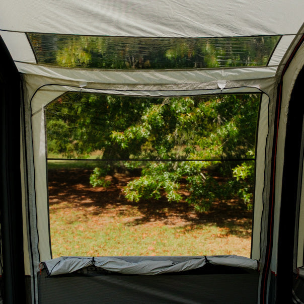 • It is important that lower vents are opened at all times to reduce condensation. During humid or damp conditions, it is recommended that the waterproof door covers are opened to expose the mesh layer, enabling additional airflow throughout your tent.